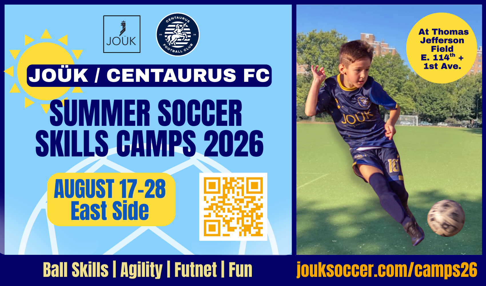 We’ll train technical skills on the ball and gain athletic ability, with 1-to-1 attention from the JOÜK/ Centaurus FC coaches.